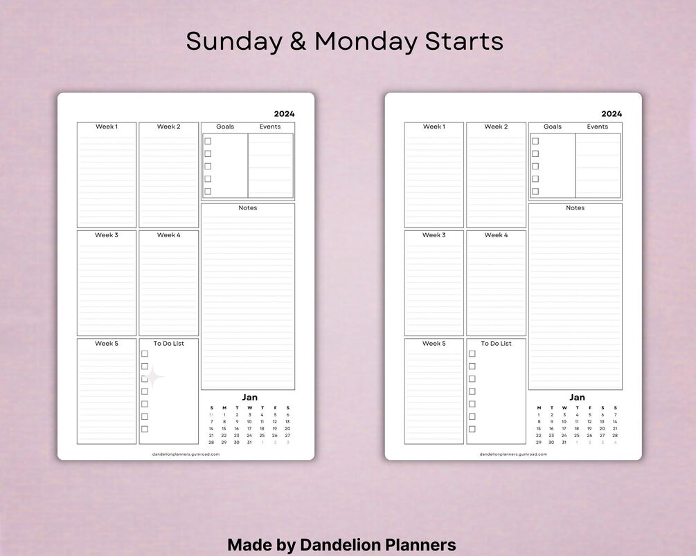 Includes: 3 Layouts & 2 Versions (Sunday & Monday Start)