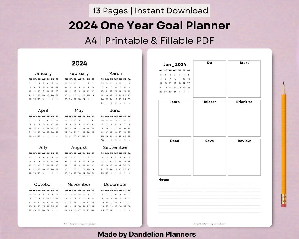 2024 One Year Goal Planner