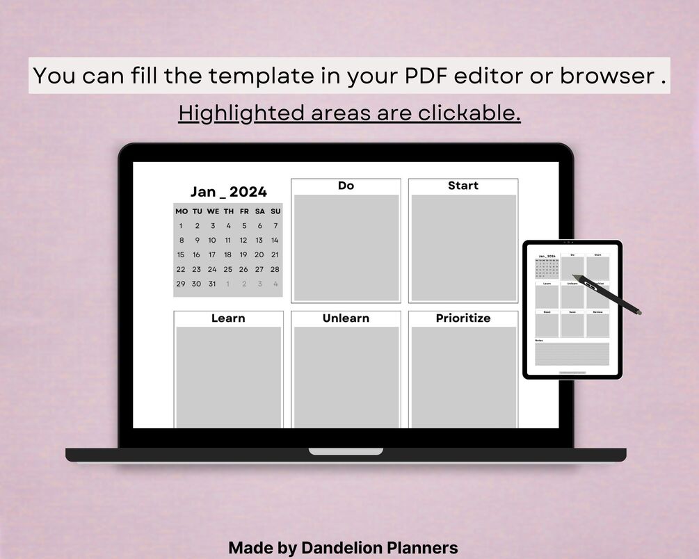 Fill the planner using the PDF editor on your computer, smart phone or your browser. You can save and keep it as a digital file or print it out.