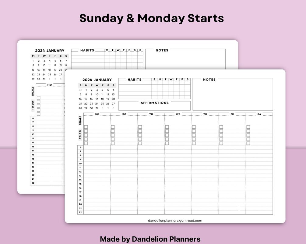 Includes: 2 Versions (Sunday & Monday Start)
