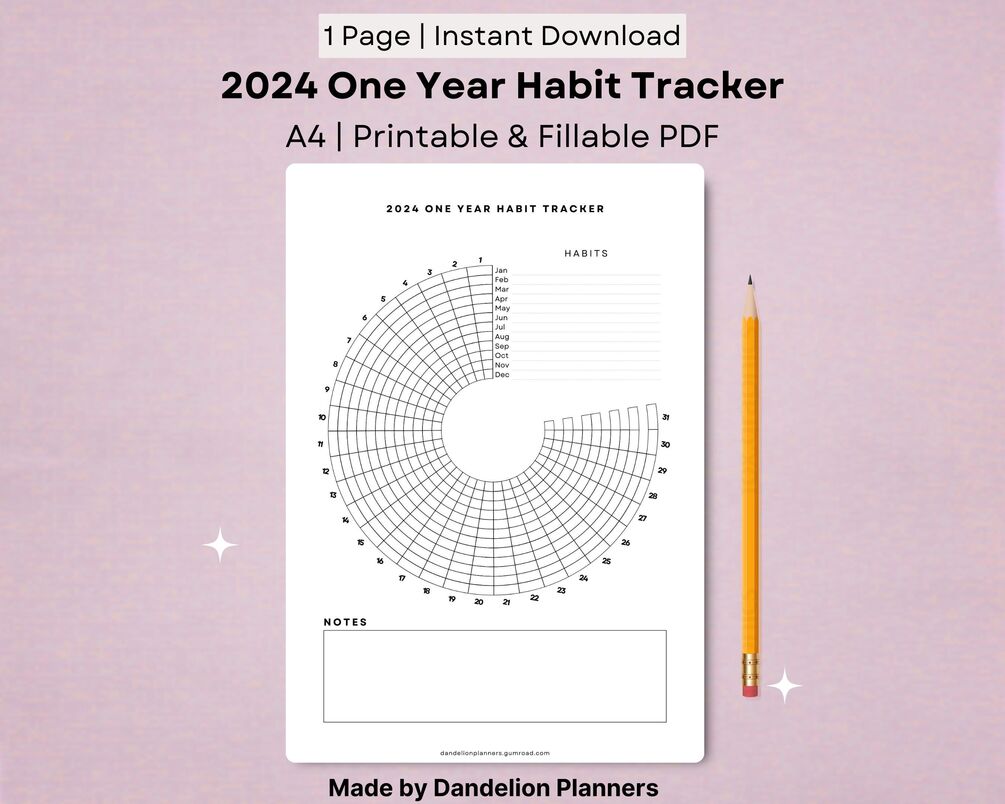 Yearly Habit Tracker, Monthly Habit Tracker, Yearly Notes