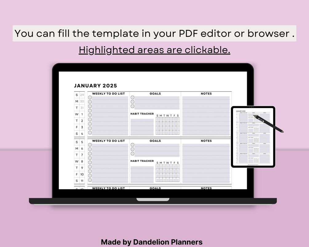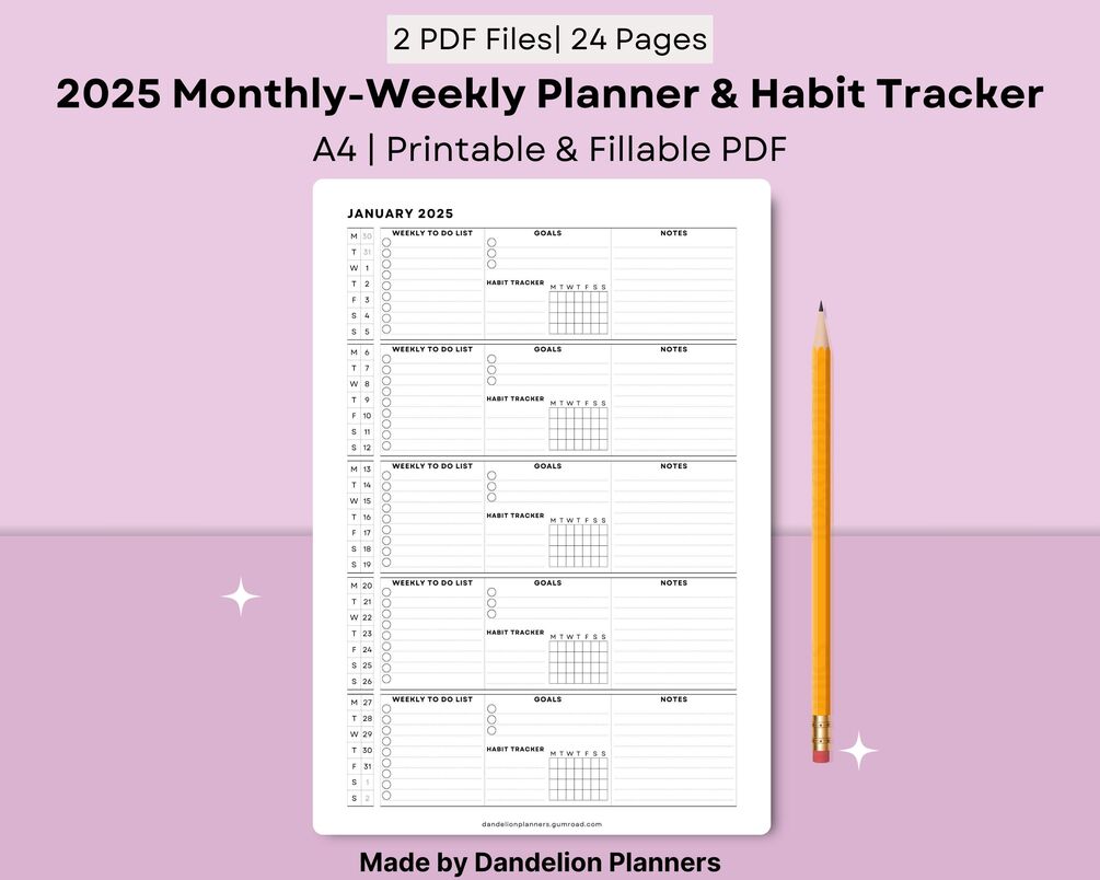 2025 Dated Monthly-Weekly Planner & Habit Tracker