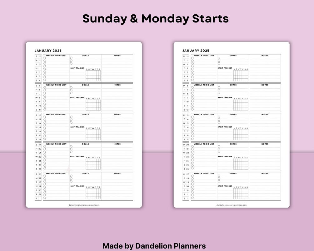 Each Version Includes: 12 Pages Of Dated 2025 Calendar And 5 Sections For Each Week, Weekly Goals, Weekly To Do List, Weekly Habit Tracker, Weekly Notes